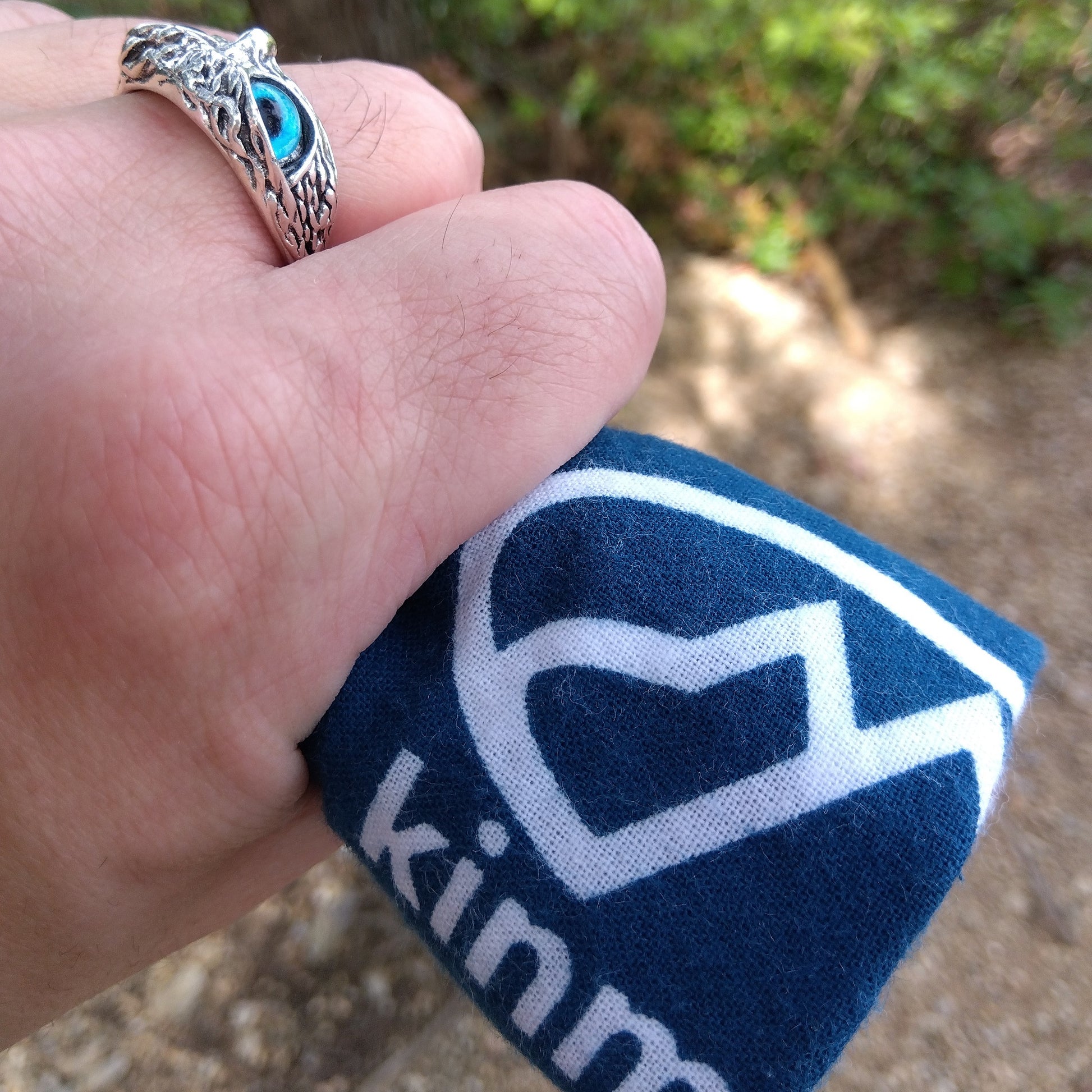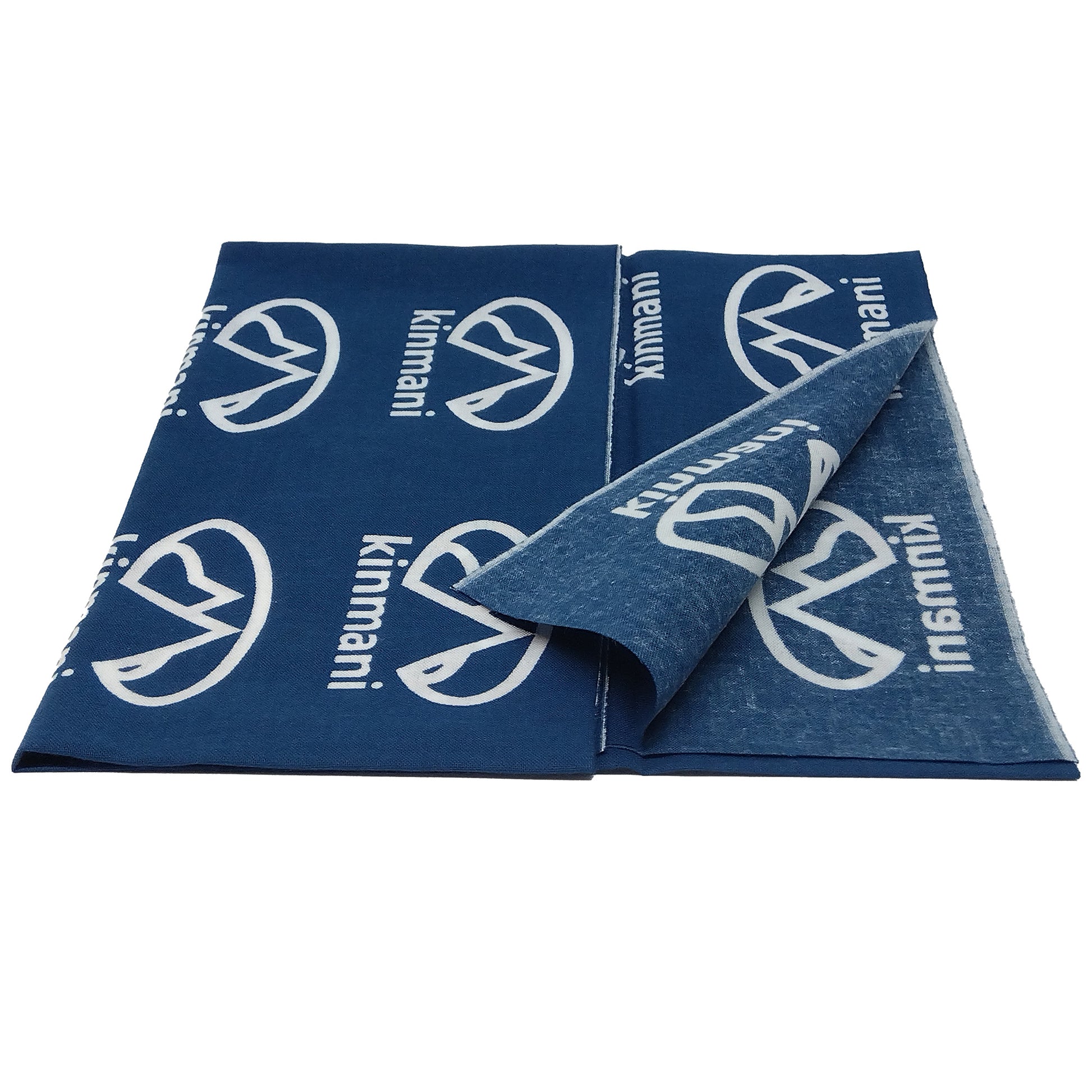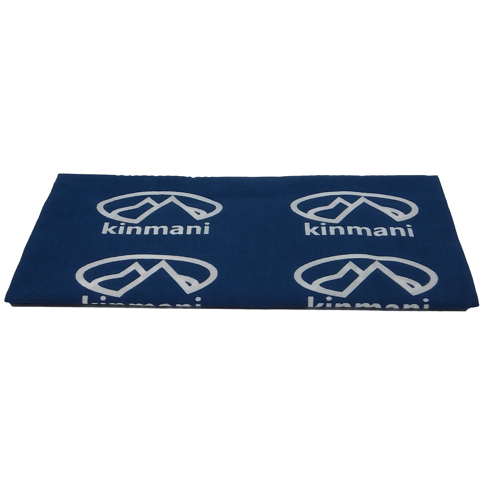 kinmani公式アイテム第1号は登山に必須の手拭いです!日本の伝統的な藍色を使用して白地と地詰まりの2パターンを作成しました。こちらは、地詰まり(ロゴマークが白)になります。
